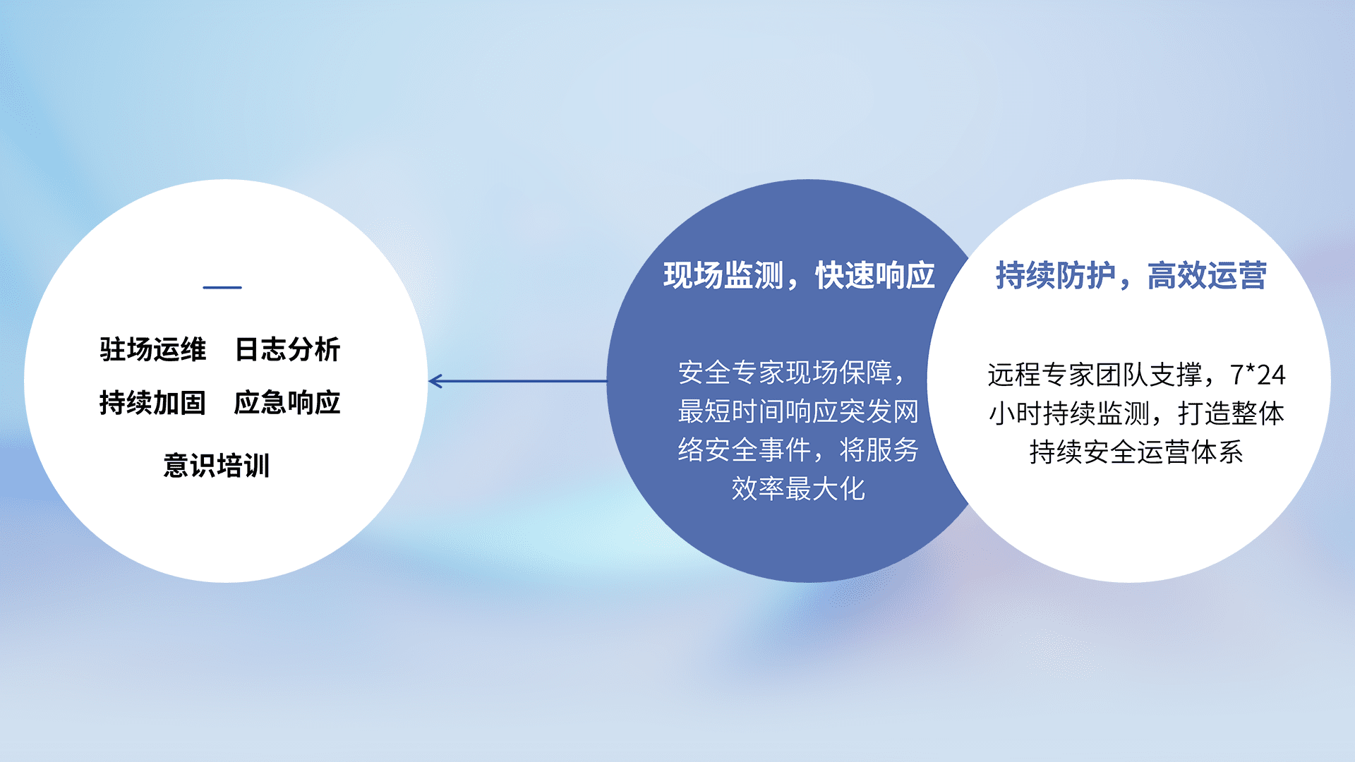 7X24小时持续监测安全事件,保持安全策略有效性,降低资产脆弱性风险,,,精准拦截黑客攻击,,减少被黑客利用的机会,,,第一时间遏制,,降低损失。。